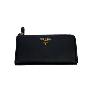 PRADA◆L字ファスナー長サイフ/牛革/ブラック/レディース