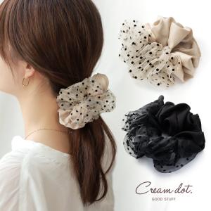 【最大32%OFF×全品送料無料】シュシュ 大人 軽い ボリューム ファッション雑貨 髪留め まとめ髪 異素材 サテン調 オーガンジー 透け感 ドット