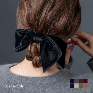 【最大32%OFF×全品送料無料】シュシュ リボン ベロア ベルベット アシンメトリー ボリューム 大きめ ヘアアクセサリー ヘアゴム 光沢感