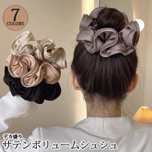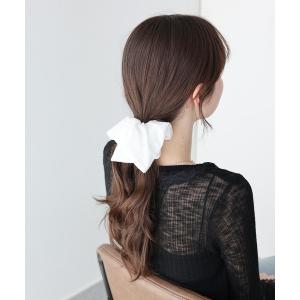 【最大32%OFF×全品送料無料】シュシュ サテン調 オーガンジー 2タイプ 透け感 光沢 リボンコード ボリューム 大きめ ヘアアクセサリー