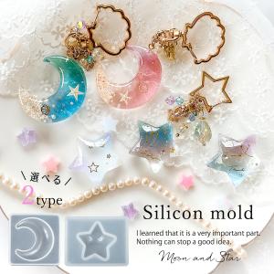 シリコン型・モールド ぷっくり月と星 シリコンモールド レジン型 UVレジン LEDレジン 立体 3D ムーン スター ヒトデ 宇宙 キーホルダー 手芸 選べる2種