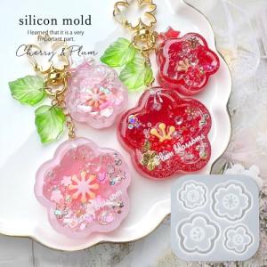 シリコン型・モールド 桜&梅のカシャカシャ レジンセット シリコンモールド 2サイズ シェイカーモールド レジン型 UV LED レジン セット