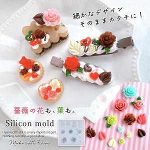 シリコン型・モールド 小さな薔薇と葉 シリコンモールド レジン型 バラ ばら ローズ リーフ アクセサリー デコパーツ 貼り付け 立体 3d UVレジン 手芸 クラフト