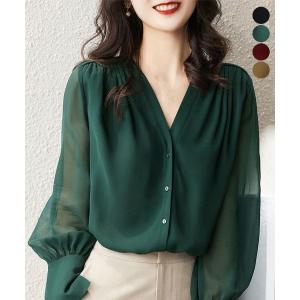 シフォンブラウス 通勤シースルートップス【ネコポス投函】
