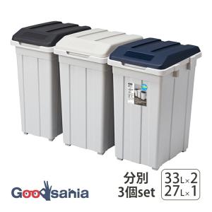 アスベル ゴミ箱 ふた付き ジョイント分別3個セット 日本製 ブルー・ライトグレー・ブラック
