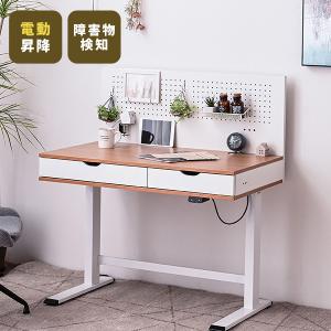 電動昇降デスク スタンディングデスク パソコンデスク 100cm幅 高さ調整 無段階 テーブル デスク 有孔ボード付き 引出し2杯 木目 おしゃれ
