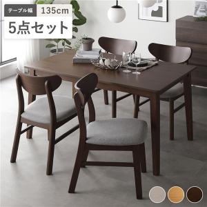 ダイニング 5点セット ダイニングテーブル 幅135cm + ダイニングチェア 4脚 ブラウン 天然木突板 木脚 リビング