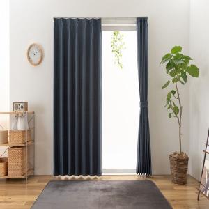 日本製 カーテン ドレープカーテン 遮光 2級遮光 洗える シンプル ナチュラル タッセル付き ウォッシャブル 〔幅150cm 長さ230 cm 1枚 ネイビー〕