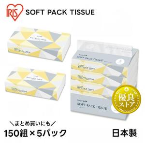 ティッシュペーパー ソフトパックティッシュ 300枚(150組)×5パック ティシュペーパー まとめ買い 備蓄 アイリス 予備