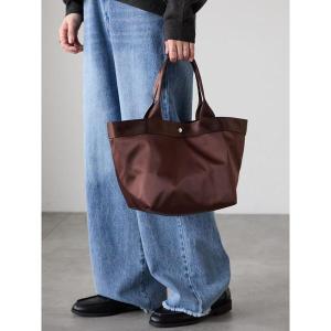 トートバッグ SHIPS: シュリンクレザー × ファブリック コンビ トートバッグ メンズ レディース