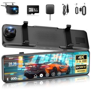 ドライブレコーダー ミラー型2025年 4KHD画質・降圧ケーブルドラレコ 伸縮式カメラ 前後170度超広角 デジタルインナーミラー 11