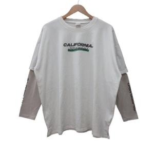 ニコアンド Niko and.. Tシャツ カットソー クルーネック プリント レイヤード 長袖 F 白 ホワイト ベージュ 緑 グリーン 黒 メンズ