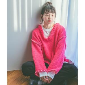 ニット セーター ハンドステッチオーバーVネックプルオーバー レディース