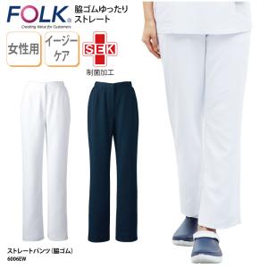ストレートパンツ 女性 レディース 医療 看護 介護 通気性 ネイル サロン エステ スリム スタイルアップ きれい FOLK フォーク 6006EW 裾上げ 爆買