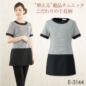 シロタコーポレーション チュニック 千鳥柄 モノトーン エステ ネイル サロンスタッフ クリニック 受付 医療系 制服 ユニフォーム シロタ 半袖 sc-e3144