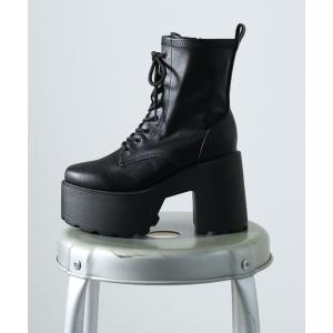 ブーツ 厚底プラットフォームチャンキーヒールレースアップストレッチブーツ ZOZOTOWN+オフィシャルサイト限定商品 レディース