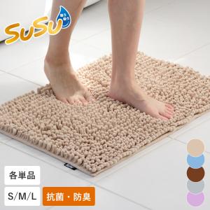 バスマット 単品 速乾 タオル地 スウスウ抗菌ストロングWバスマットEC S M L 吸水 マイクロファイバー 足拭きマット お風呂マット 抗菌 風呂 浴室 山崎産業