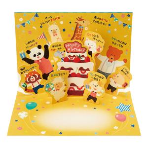 バースデーカード 立体 ケーキの周りに動物たち柄 241997 [M便 1/4]