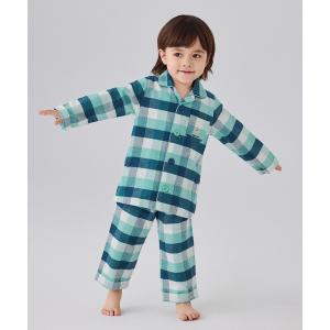 パジャマ おなか安心ボタン付きやわらかネル起毛長袖前開きパジャマ(先染めモザイクチェック) キッズ 子供 男の子 女の子