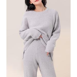 パジャマ ルームウェア レディース 長袖もちもちモールニットルームウェア 上下2点セット レディース