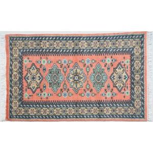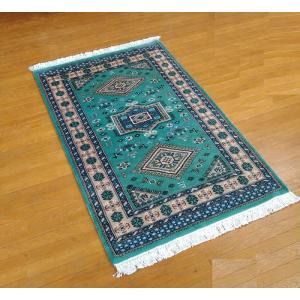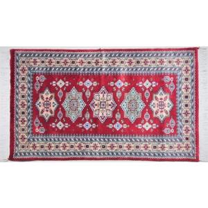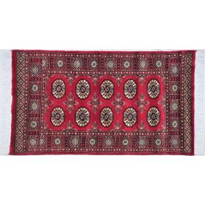 パキスタン絨毯 ウール100% 手織り絨毯 ムガール 玄関マット 約74×127cm レッド