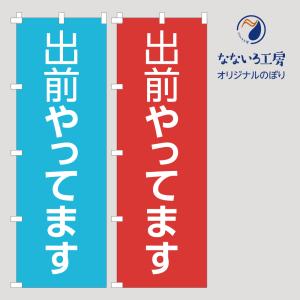 のぼり 旗 出前やってます 宅配 配達 フードデリバリー お店 ごはん お知らせ 案内 文字 シンプル 600*1800 青赤