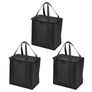 uxcell PATIKIL 33x20.5x35.5cm 断熱再利用可能な食料品バッグ 3個入り ジッパー付き 折りたたみ可能 ブラック