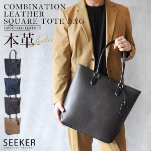 トートバッグ メンズ 本革 スクエア ビジネス 収納 大容量 ファスナー ブリーフケース トート バッグ ビジネスバッグ 大容量 A4 PC SEEKER