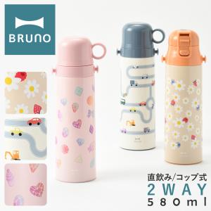 ブルーノ 水筒 キッズ 子供 580ml 軽量 BHK255 BRUNO ライト2WAYキッズボトル 直飲み コップ ステンレスボトル マグボトル スケーター 真空保温 保冷 車 花柄