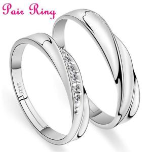 指輪 リング ペアリング ひねり ねじれ サイズ調整可 レディース メンズ アクセサリー ラインストーン シルバーカラー