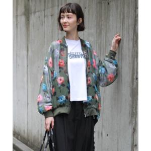 ブルゾン アウター シフォンオイルペイントローズプリントジップアップブルゾン レディース