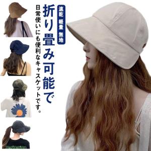 ポニーテール穴付き ハット バケットハット レディース キャスケット つば広 帽子 日よけ吸汗 速乾 軽量 折りたたみ可能 春 夏 秋 無地 お出かけ