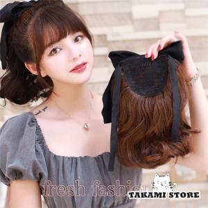 ポニーテール ウィッグ ロング カール エクステ 自然 セミロング ミディアム つけ毛 ゆるカール リボン ポイントウイッグ レディース