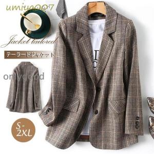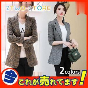 テーラードジャケット レディース チェック柄 スーツ ジャケット 秋 長袖 アウター 着痩せ ビジネス 事務服 制服 事務所