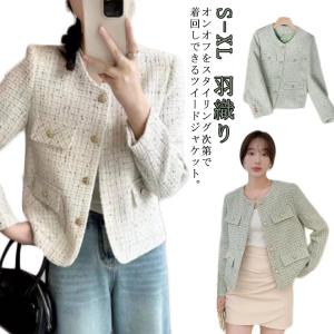 ジャケット レディース フォーマル ツイードジャケット アウター カーディガン ショート丈 春 秋 ママスーツ オフィス カジュアル 通勤 女性 OL