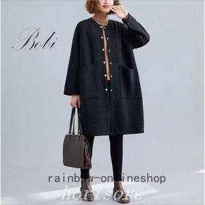 キルティングコートレディースキルティングコートロングノーカラートレンチコートロングコートふんわり大きいサイズ大人ゆったりアウター