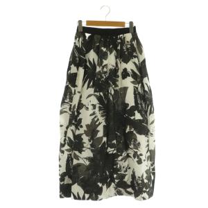 ミラオーウェン Mila Owen ウエストゴムランダムタックコクーンスカート ロング 総柄 リネン混 0 ブラック /MY ■OS レディース