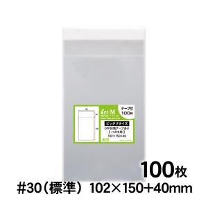 OPP袋 ハガキ超ぴったりサイズ テープ付 100枚 30ミクロン厚(標準) 102×150+40mm 透明袋 国産