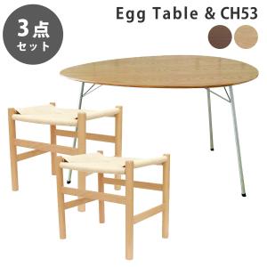 ダイニングテーブルセット お得な 3点セット アルネ・ヤコブセン エッグテーブル & ハンスjウェグナー CH53 スツール デザイナーズ リプロダクト