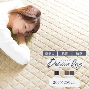 デニムラグ キルトラグ ラグマット カーペット 3畳 200×250cm 防ダニ 抗菌防臭 綿100% デニム地 洗える オールシーズン 床暖房OK 滑り止め付き