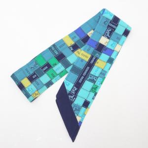 【HERMES】エルメス ツイリー スカーフ Bolduc au Carre ボルデュックチェック シルク100% ターコイズ×ブルーヴィフ【中古】【代金引換不可】/br6513br
