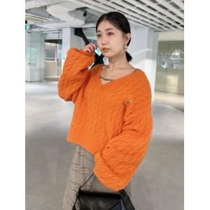 「LILY BROWN」 Vネックニット FREE オレンジ レディース