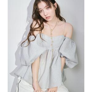 リリーブラウン Lily Brown シャツ ブラウス シアー パワースリーブ 五分袖 ボウタイ リボン 花柄 ONE 水色 /YI レディース