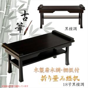 伝統型経机【木製唐木調・棚板付 折り畳み経机:古筆(こふで)黒檀調 18号】