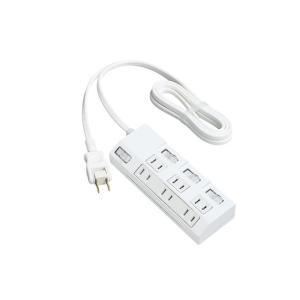 電源タップ 延長コード 節電タップ 6個口 ホワイト 3m 一括集中スイッチ 個別スイッチ USB付 Type-C APD20W 雷ガード マグネット付 TAP-B108UC-3W
