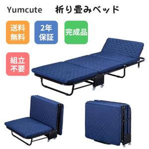 Yumcute 三つ折り ベッド 折り畳みベッド シングル コンパクト ベッドフレーム 組立不要 低反発マットレス 完成品 持運びやすい