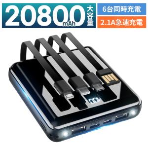 【クーポンで2392円】モバイルバッテリー 小型 軽量 22800mAh 5台同時充電 ケーブル内蔵 機内持込 携帯充電器 iphone/ipad/Android対応 防災 PSE認証済