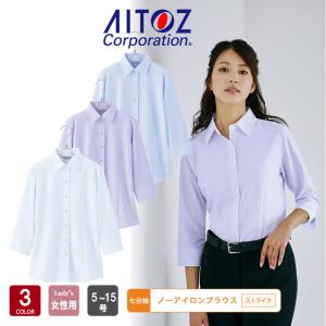スーパーノーアイロンブラウス ストライプ 七分袖 ニット素材 HCB4007 吸汗速乾 ストレッチ 防汚加工 オフィス 事務服 制服 5〜15号 アイトス