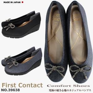 FIRST CONTACT ファーストコンタクト 日本製 ウェッジソール パンプス 歩きやすい パンプス 黒 コンフォートシューズ レディース 39638 靴 外反母趾
