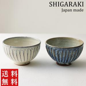 信楽焼 茶碗 ペアセット 夫婦茶碗 白青彫 おしゃれ 北欧 陶器 作家 食器 お茶碗 お茶わん